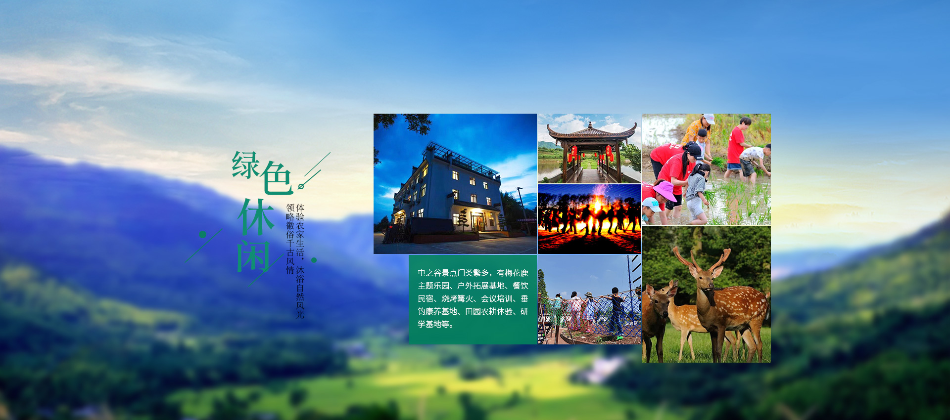 有梅花鹿主題樂園、戶外拓展基地、露營派對、餐飲民宿、燒烤篝火、會議培訓、研學基地等
